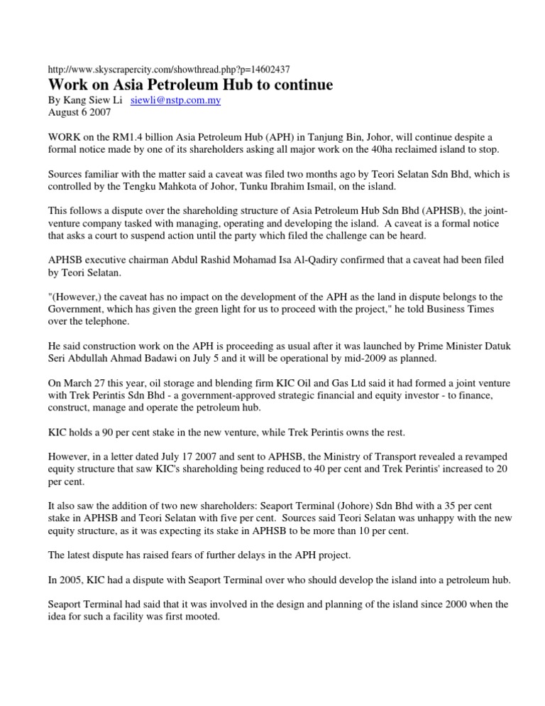 Asia Petroleum Hub Johor Hydrocarbons Technology